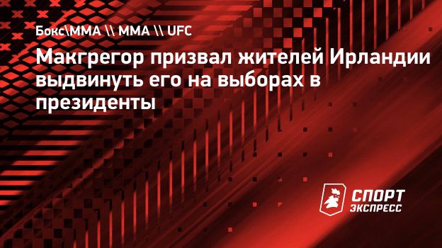 «Граждане Ирландии, время для настоящих перемен настало! В качестве президента я не подпишу ни один законопроект, пока его не обсудит народ. Если вы хотите увидеть мое имя в бюллетене на выборах президента, я призываю вас сегодня связаться с вашими местными окружными советниками и попросить их выдвинуть мою кандидатуру», — написал Макгрегор в своих соцсетях.
