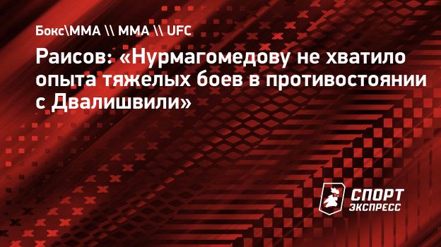 Раисов: «Нурмагомедову не хватило опыта тяжелых боев в противостоянии с Двалишвили»