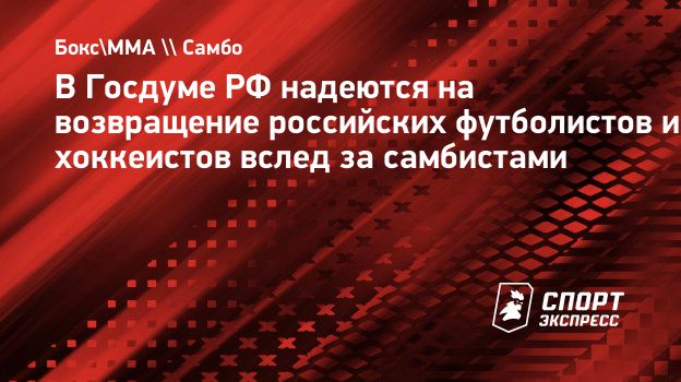 В Госдуме РФ надеются на возвращение российских футболистов и хоккеистов вслед за самбистами