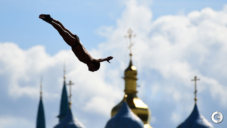 В Казани стартовал турнир прыгунов в воду с 27-метровой вышки. После первого дня соревнований лучший из россиян Артем Сильченко идет седьмым, проигрывая лидеру 42,65 балла. Россиянин Евгений Рылов вышел в финал ЧМ-2015 на дистанции 100 м баттерфляем. Россиянка Юлия Ефимова вышла в полуфинал чемпионата мира на дистанции 100 м брассом. Фото Александра Федорова, "СЭ"