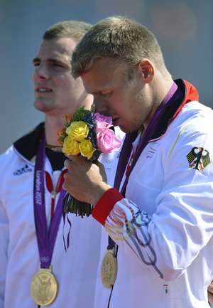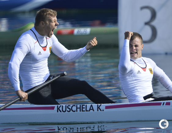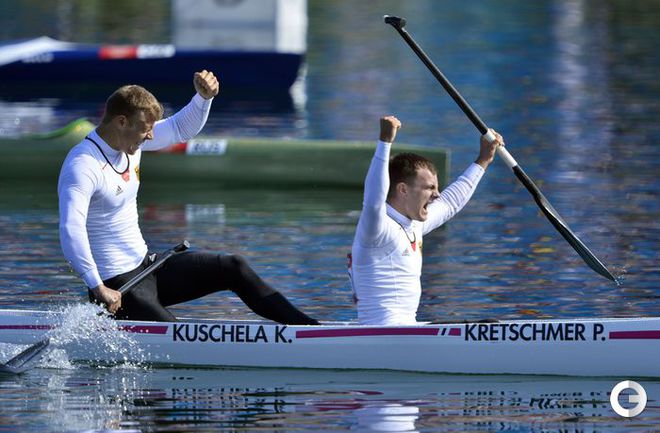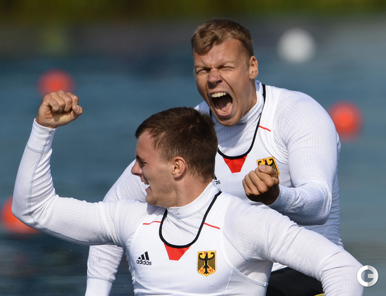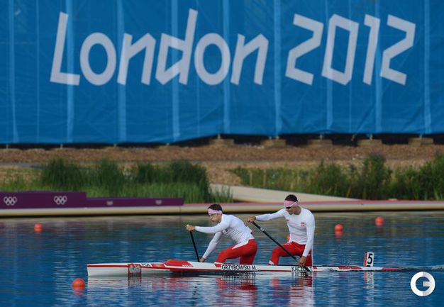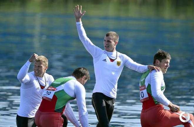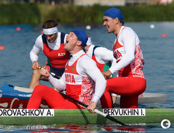 Дорни. Олимпийские игры. Мужчины. Каноэ-двойка, 1000 м. Финал. 1. Кретшмер/Кушела (Германия) - 3.33,804. 2. Анд. Богданович/Ал. Богданович (Белоруссия) - 3.35,206. 3. КОРОВАШКОВ/ПЕРВУХИН (Россия) - 3.36,414. Фото AFP