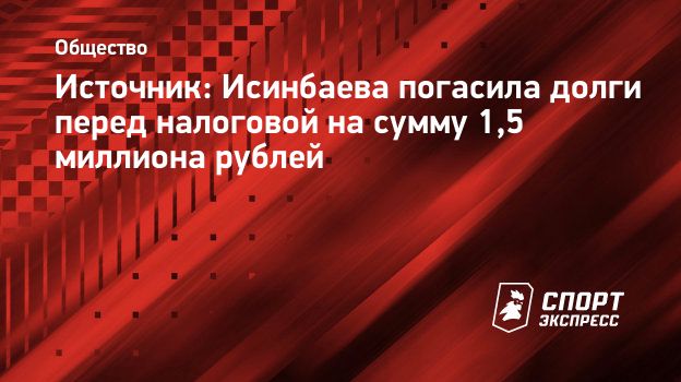 По данным источника, она выплатила долг в размере 1,5 миллионов рублей. Счета Исинбаевой после этого были разморожены, а исполнительные производства — закрыты.