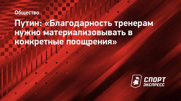 «Мы постоянно вспоминаем о тренерах, — цитирует ТАСС главу государства. — Но, конечно, эти вопросы, которые мы время от времени поднимаем — и выражаем слова благодарности, — нужно, конечно, их как-то и материализовывать в чем-то».