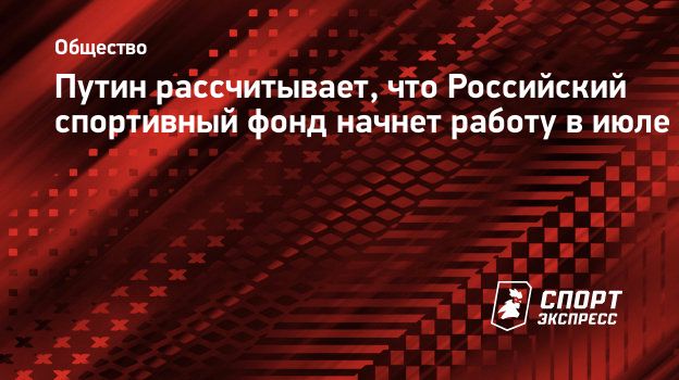 Президент РФ Владимир Путин рассчитывает, что создаваемый Российский спортивный фонд начнет свою работу в июле этого года.