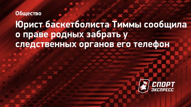 Юрист баскетболиста Тиммы сообщила о праве родных забрать у следственных органов его телефон