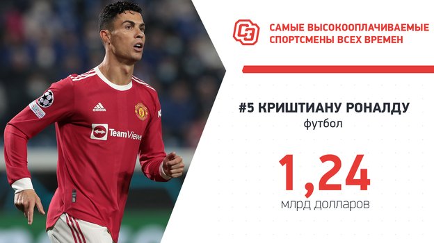 Лучший из футболистов в рейтинге — Криштиану Роналду. Португалец замыкает топ-5. Роналду даже вместе с Лионелем Месси уступает одному Джордану.