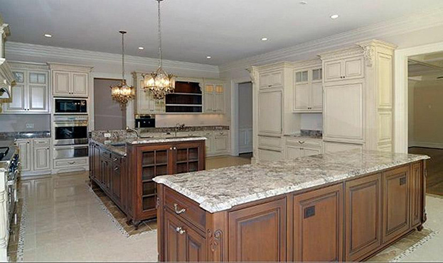 В доме есть огромная кухня, совмещенная со столовой. Мебель выполнена из натурального дерева, которую отлично дополняют три массивные люстры. Для пола была выбрана паркетная доска орехового оттенка. Гостиную украшают витиеватые узоры и орнаменты. В гостиной есть выход на задний двор с подстриженным газоном. Еще в доме у Александра находится личный кабинет. В особняке есть семь ванных комнат, самая большая выделена супругам, натуральный мрамор бежевого оттенка создает атмосферу роскоши. Это подчеркивают и черная мраморная столешница с темной зеркальной рамой. В ванной расположено джакузи с функцией гидромассажа, который помогает расслабиться после игр и тренировок. Джакузи установлено у окна, что позволяет любоваться природой. Стены украшают из металла кованые светильники, выполненные в форме уличных фонарей. В спальной комнате пары установлен электрический камин, на полке сверху поставлены рамки с семейными фотографиями и иконы.