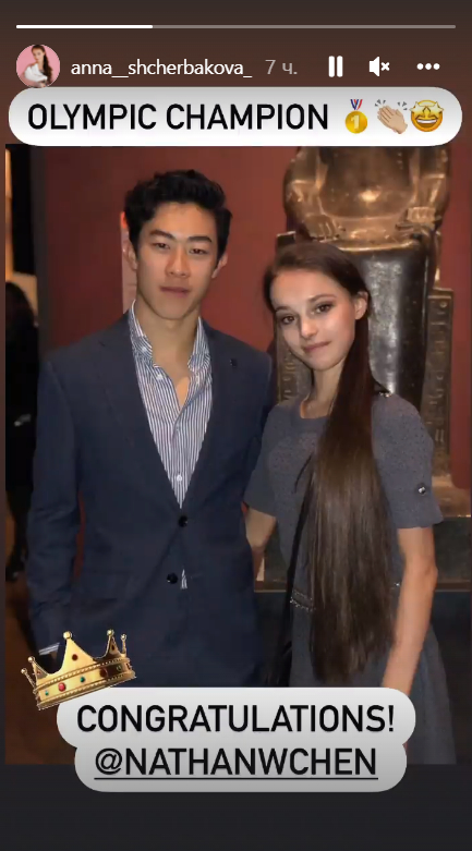 Щербакова — Натану Чену: «Олимпийский чемпион. Поздравляю»