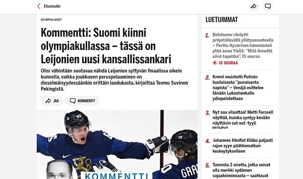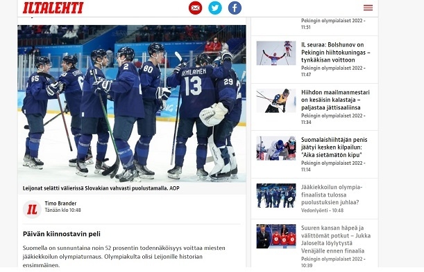 «Финляндия вышла в финал, где поборется за олимпийское золото — вот и новые национальные герои. По крайней мере, хотелось бы, чтобы «Львы» достойно смотрелись в финале, хотя в целом игра команды очень качественная», — пишет Теему Сувинен из Пекина.