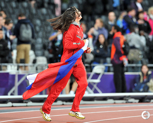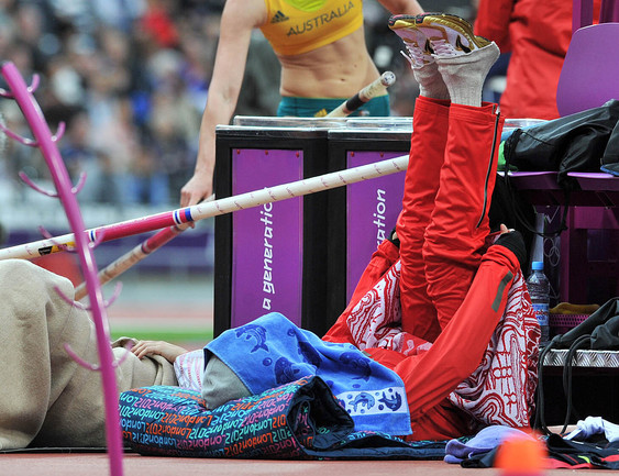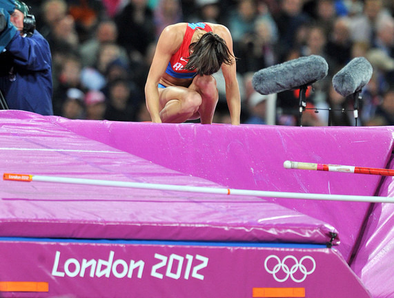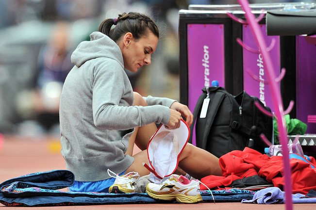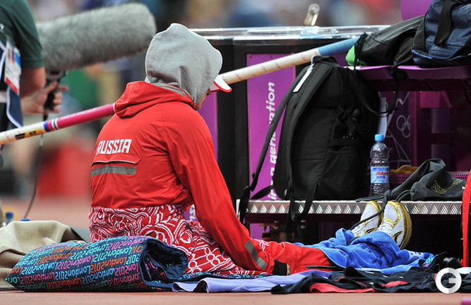 30-летняя Елена Исинбаева не смогла стать трехкратной олимпийской чемпионкой в прыжках с шестом, заняв третье место с результатом 4,70. Победительницей стала американка Дженнифер Сур. Фото специального корреспондента "СЭ" в Лондоне Алексея ИВАНОВА.