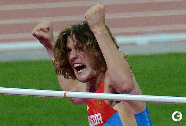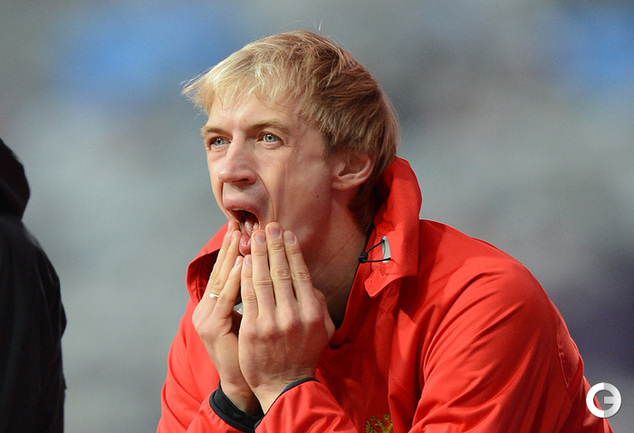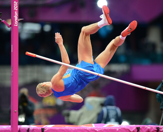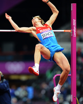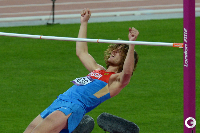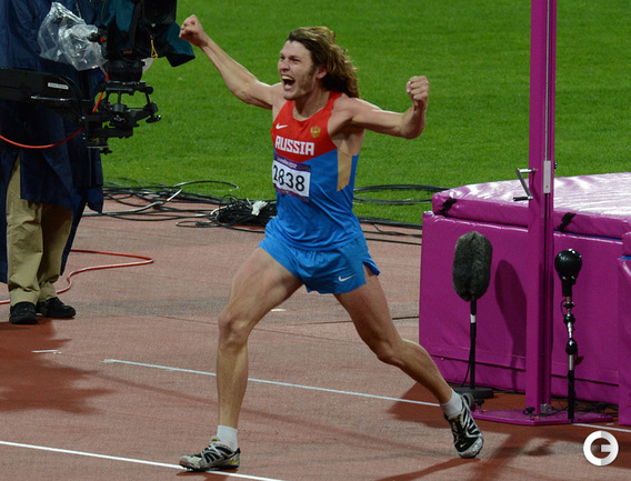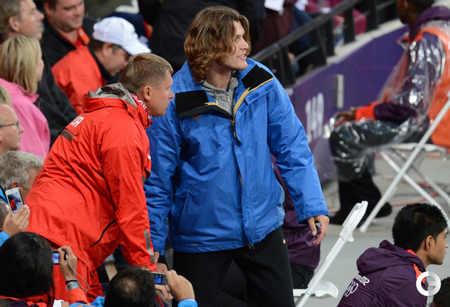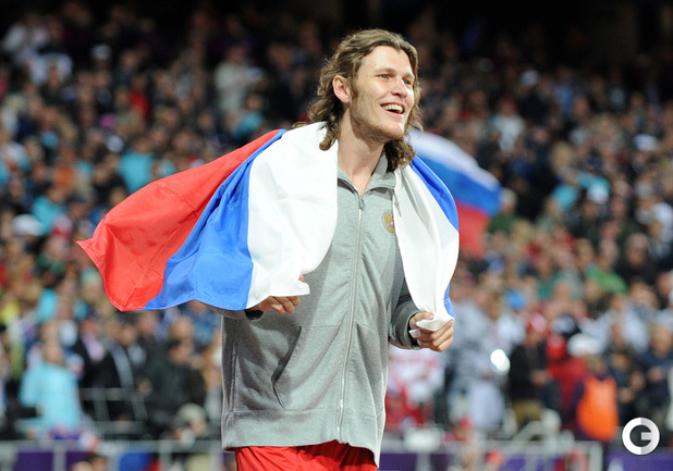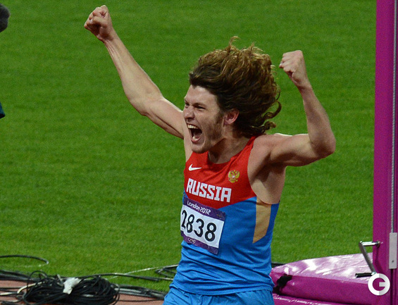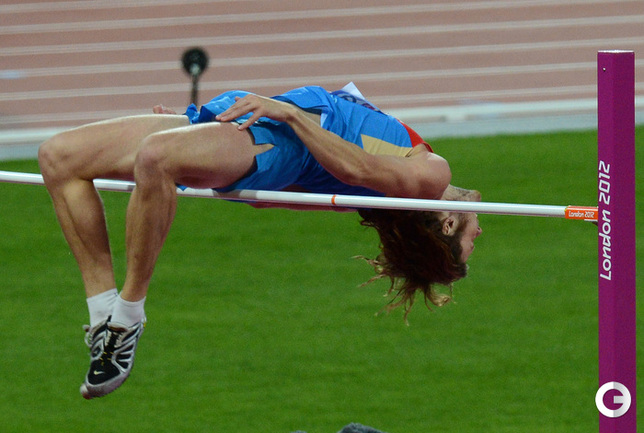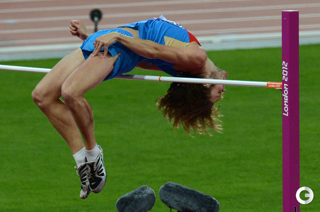 Лондон. Олимпиада. Прыжки в высоту. Мужчины. 26-летний Иван Ухов победил в прыжках в высоту. Он взял с первой попытки 2,38. Чемпион пекинских Игр-2008 Андрей Сильнов остался лишь 12-м. Фото - Алексей ИВАНОВ, "СЭ"
