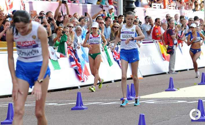Фоторепортаж специального фотокорреспондента "СЭ" на олимпийских играх в Лондоне Алексея Иванова с соревнований по спортивной ходьбе на 20 км среди девушек, где победу одержала российская легкоатлетка Елена Лашманова. Второй место заняла россиянка Ольга Каниськина.