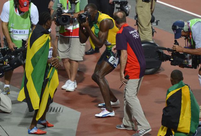 Первые сто метров Усэйн на своей седьмой дорожке все время косил глазами влево, где бежал Блэйк. Только выйдя из поворота и развив максимальную скорость, он, наконец, стал глядеть вперед. Метров за 40 до финиша Блэйк стал настигать конкурента, но тот внимательно смотрел на табло, контролируя отрыв. А уже в клетках приложил палец к губам. Болт не тот спортсмен, который бездумно использует "язык тела", и о том, что значил этот жест, его наверняка весь вечер расспрашивали репортеры. Равно, как и о том, в чем был смысл отжиманий на лондонской дорожке.