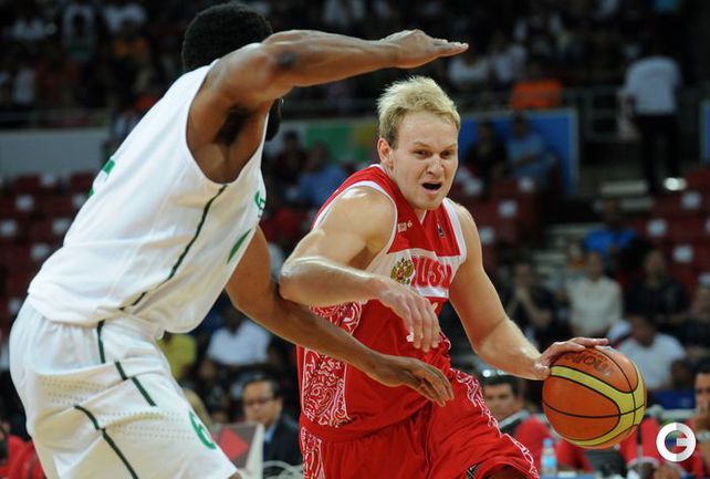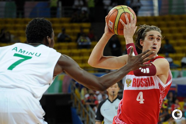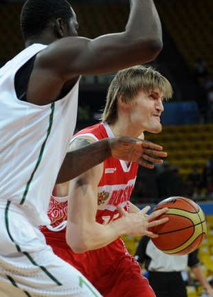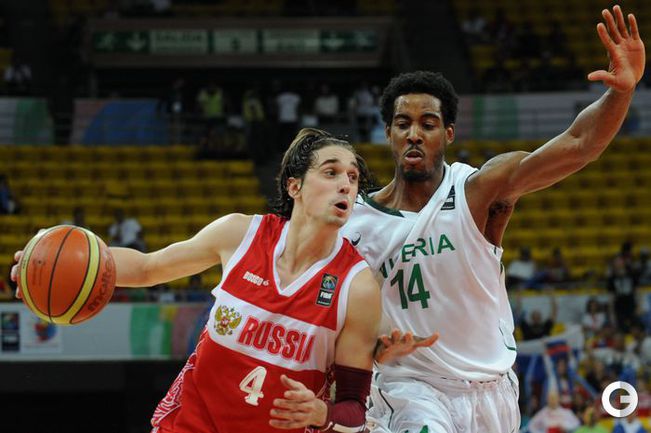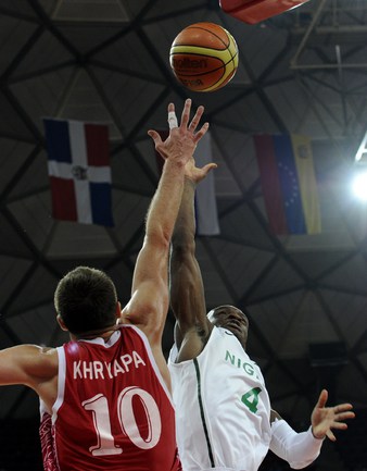 Олимпийский квалификационный турнир. 1/2 финала. Нигерия - Россия - 77:85 (23:26, 8:20, 22:22, 24:17 ). Победив в полуфинале олимпийского квалификационного турнира в Каракасе нигерийцев, сборная России добыла путевку в Лондон. Фото AFP