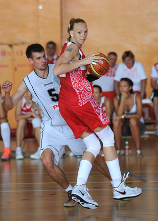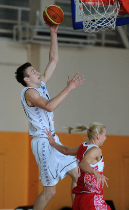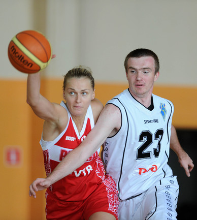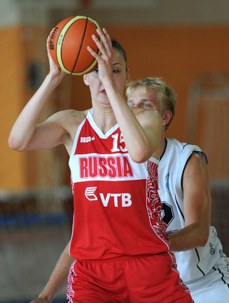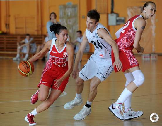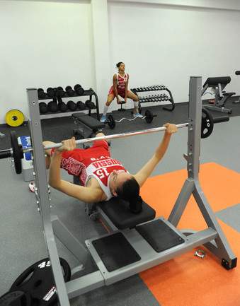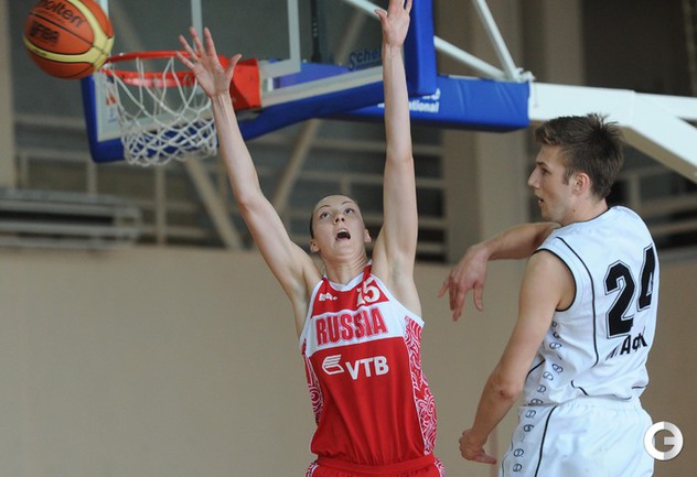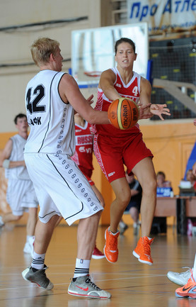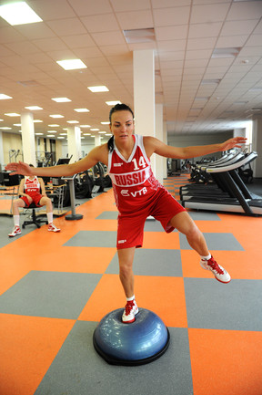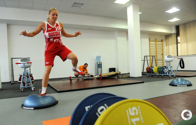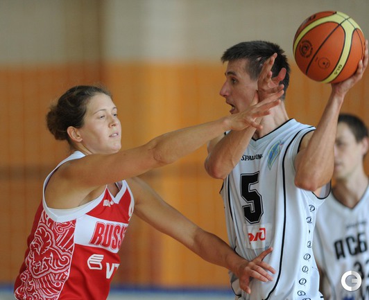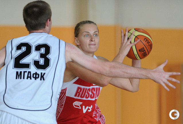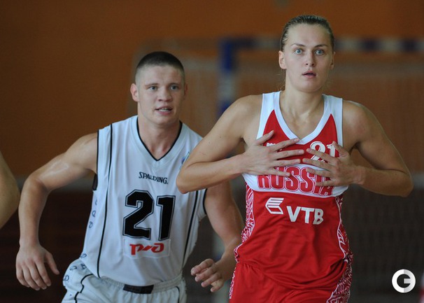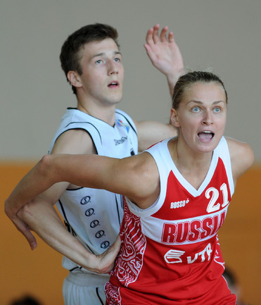 Баскетболистки сборной России продолжают подготовку в Олимпиаде в Лондоне. На олимпийской базе в Новогорске девушки из команды Бориса Соколовского провели контрольный матч против мужской команды МГАФК, лидера студенческого баскетбола страны. Девушки уступили с боем - 82:100. Фото - Федор УСПЕНСКИЙ, "СЭ"