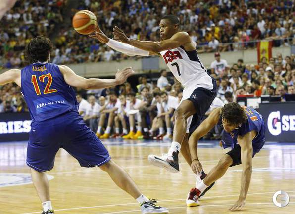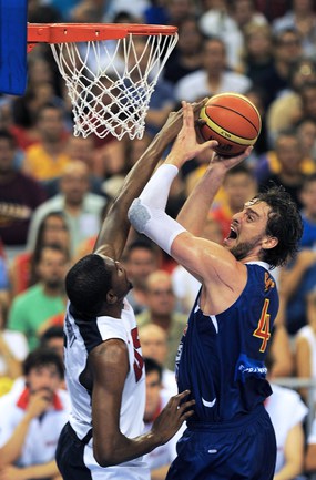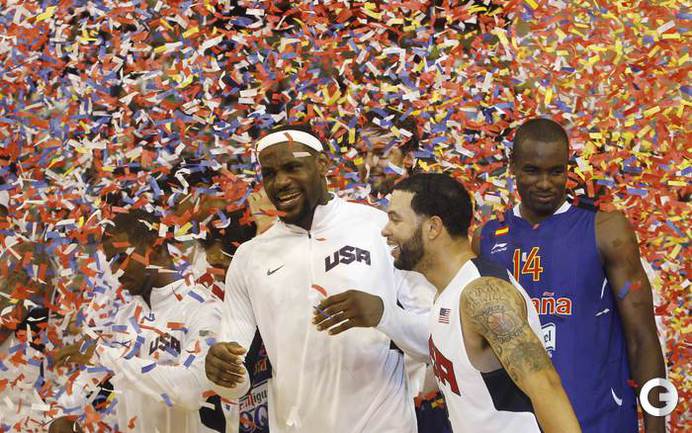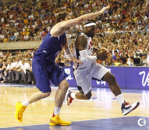 Баскетбол. Барселона. Товарищеский матч. Испания - США - 78:100 (23:21, 17:27, 19:26, 19:26). И: П. Газоль (19), Ибака (16). С: Энтони (27), Джеймс (25). Американские баскетболисты, считающиеся фаворитами Олимпиады, завершили серию из пяти товарищеских матчей. Подопечные Майка Кржижевски поочередно обыграли сборные Доминиканской Республики, Бразилии, Великобритании, Аргентины и Испании, не потерпев ни одного поражения. Фото AFP и REUTERS