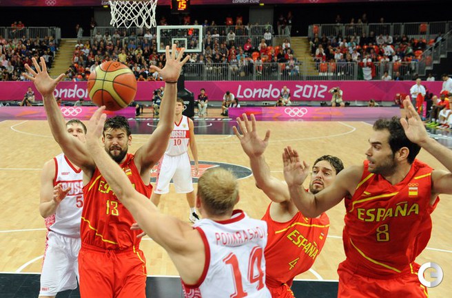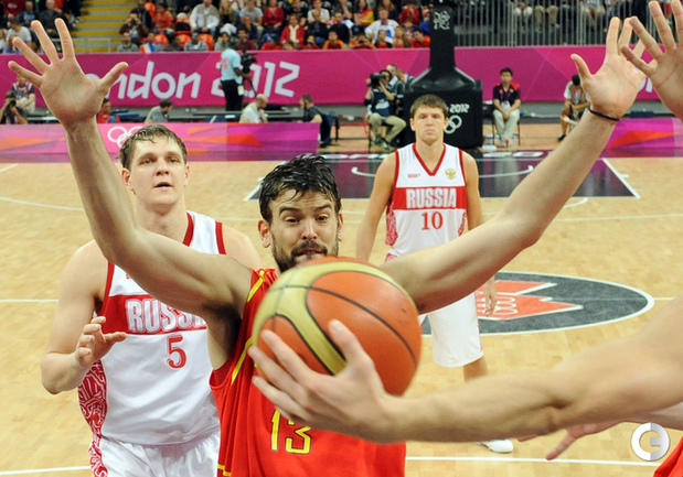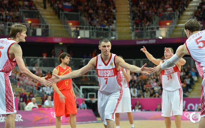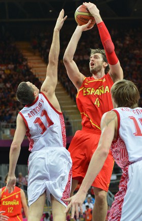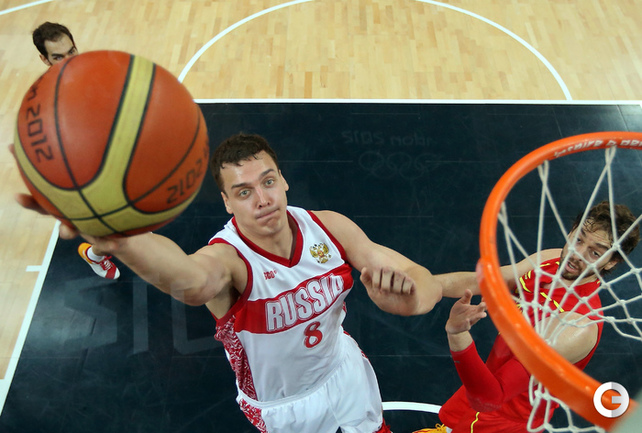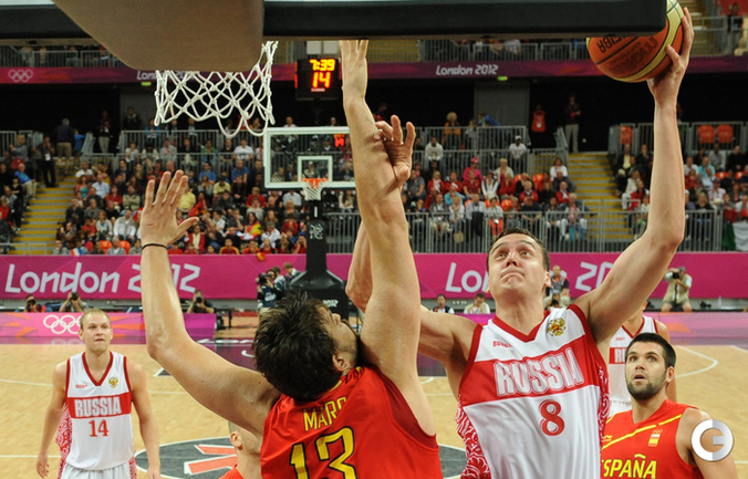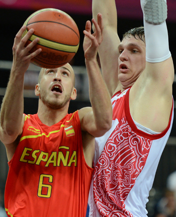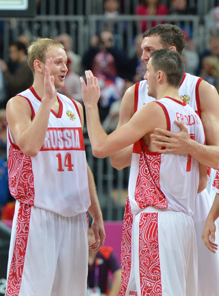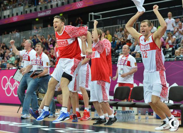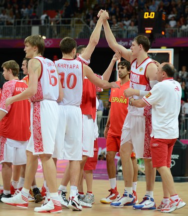 Лондон. Олимпийские игры. Мужчины. Групповой турнир. 4-й тур. Группа В. РОССИЯ - ИСПАНИЯ - 77:74 (11:28, 21:12, 24:13, 21:21). Р: Фридзон (24), Понкрашов (14 + 11 передач), Мозгов (12+9 подборов), Хряпа (12), Кириленко (8 + 8 подборов), Моня (3), Антонов (3), Каун (1). И: П. Газоль (20), Фернандес (10), М. Газоль (10 + 9 подборов), Наварро (9), Родригес (8), Льюль (6), Сан-Эметерио (3), Ибака (2). Фото AFP