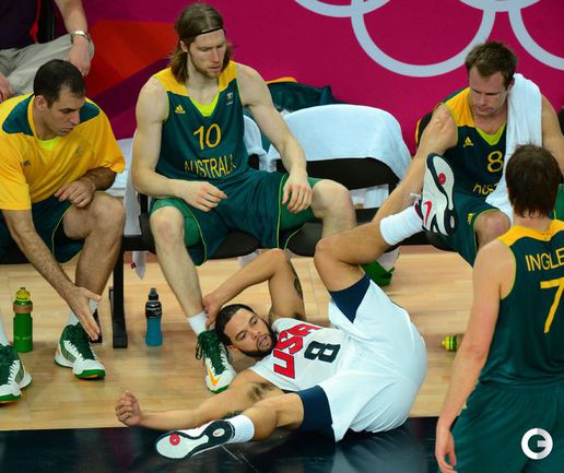 Баскетбол. Лондон. Олимпийские игры. Мужчины. Плей-офф. 1/4 финала. США – Австралия – 119:86 (28:21, 28:21, 28:28, 35:16). С: К. Брайант (20), Дер. Уильямс (18), К. Энтони (17). А: Миллз (26), Инглс (19). Бразилия – Аргентина - 77:82 (26:23, 14:23, 14:18, 23:18). Б: Уэртас (22), Барбоза (22). А: Скола (17), Дельфино (16), Жинобили (16). 10 августа - 1/2 финала: Испания – РОССИЯ, Аргентина – США. Фото AFP