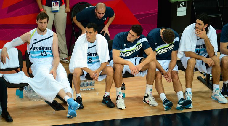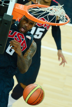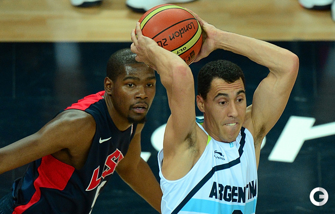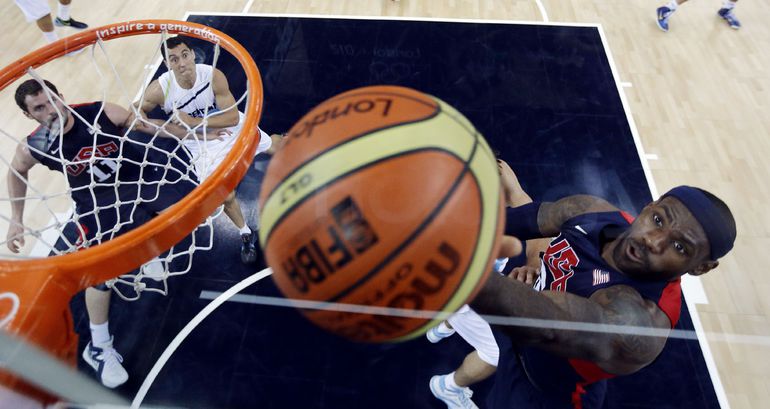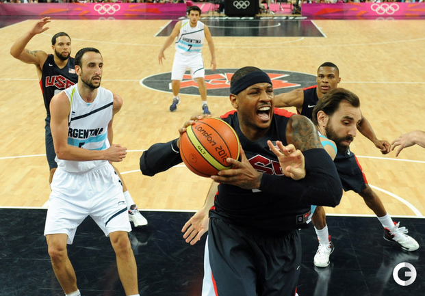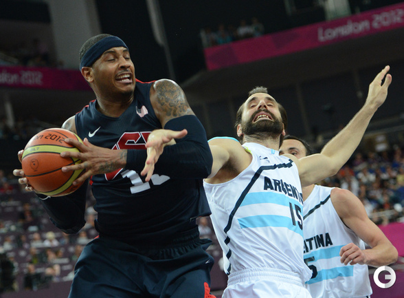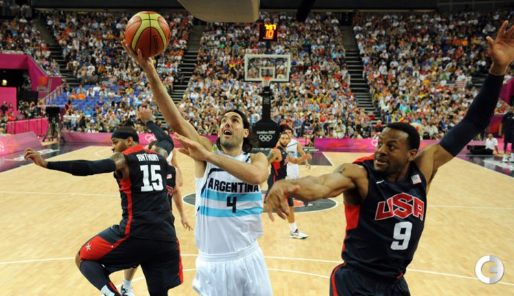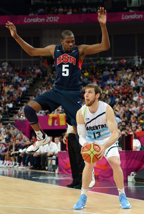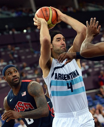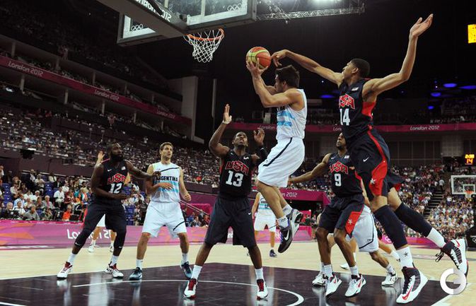 Баскетбол. Лондон. Олимпийские игры. Мужчины. 1/2 финала. Аргентина – США – 83:109 (19:24, 21:23, 17:27, 26:35). А: Жинобили (18), Скола (15), Дельфино (15). С: Дюрант (19), Л. Джеймс (18 + 7 подборов + 7 передач), Брайант (13), Пол (10). Фото AFP