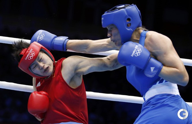 Бокс. Лондон (Великобритания). Олимпийские игры. Женщины. До 75 кг. 1/2 финала. Россиянка Надежда Торлопова в полуфинале победила китаянку Ли Дзиньцызы. В финале она встретится с американкой Клариссой Шилдс. Россиянка Софья Очигава вышла в финал боксерского турнира в весовой категории до 60 кг. В полуфинале она одолела бразильянку Адриану Араужу. В решающем поединке Очигава сразится с ирландкой Кэти Тэйлор. Фото REUTERS