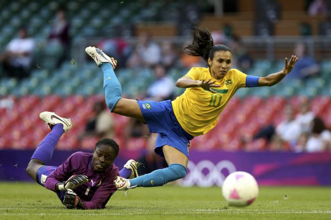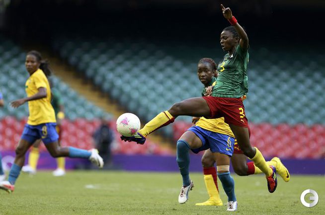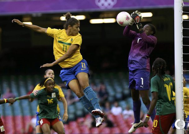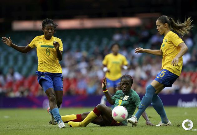 Кардифф (Великобритания). Олимпийские игры. Женщины. Групповой турнир. Группа Е. 1-й тур. Камерун - Бразилия - 0:5 (0:0). Фото AFP