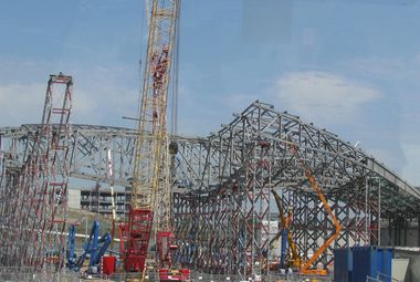 А пока здесь в самом разгаре строительные работы. С инвесторами, несмотря на кризис, особых проблем вроде бы нет, соответственно, и панорама вокруг не самая живописная - горы песка и щебня, трубы и балки, подъемные краны и экскаваторы, бетономешалки и грузовики, передвигающиеся по огороженной территории с максимальной скоростью 15 миль (или около 24 километров) в час.