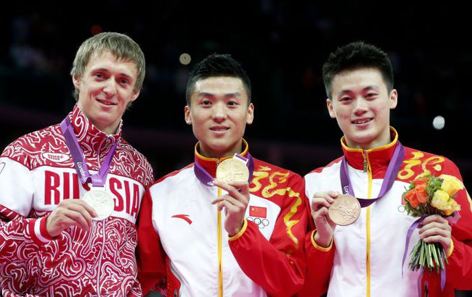 North Greenwich Arena. 3 августа. Мужчины. Финал. 1. Дун Дун (Китай) - 62,990. 2. УШАКОВ - 61,769. 3. Лю Чюньлун (Китай) - 61,319. 4. Ито (Япония) - 60,895. 5. Уэяма (Япония) - 60,240. 6. ФЕДОРЕНКО - 59,105.