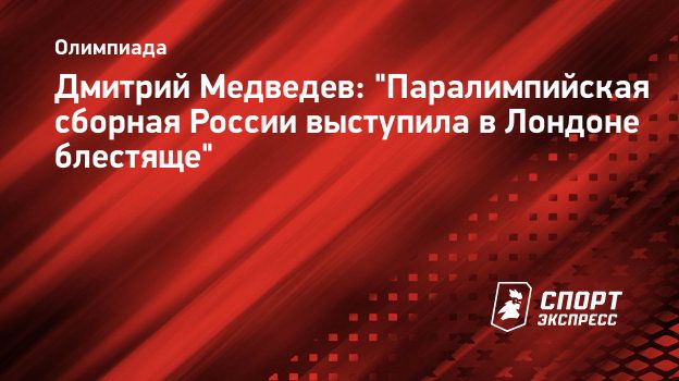 Дмитрий Медведев: "Паралимпийская сборная России выступила в Лондоне блестяще"