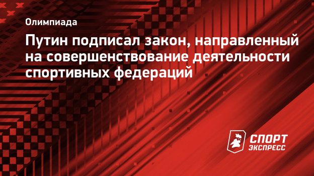 Путин подписал закон, направленный на совершенствование деятельности спортивных федераций