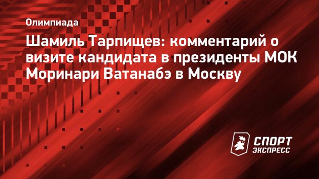 Президент Федерации тенниса России (ФТР) Шамиль Тарпищев в разговоре с «СЭ» высказался о визите кандидата в президенты МОК Моринари Ватанабэ в Москву.