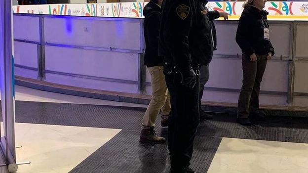 Незадолго до окончания выступлений с трибуны свалился зритель – девочка. Она баловалась и упала с верхнего яруса трибуны через ограждение, примерно над зоной kiss and cry. Маленькая девочка жива, ее сразу же отправили на скорой в больницу в сопровождении бабушки.