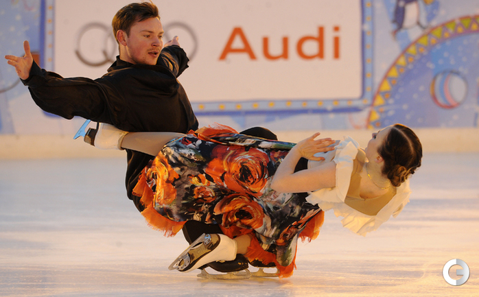 Москва. На площадке ГУМ-катка на Красной площади в рамках празднования юбилея Виталия Смирнова прошло ледовое шоу с участием Олимпийских чемпионов Юлии Липницкой, Екатерины Бобровой и Дмитрия Соловьёва. Фото - Алексей Иванов "СЭ".