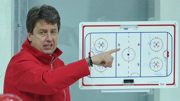 Олег Знарок рассматривал трибуны поверх корреспондентских голов – выискивал, должно быть, Леонида Слуцкого, приехавшего на тренировку днем раньше. Не нашел – и вернулся к хоккею.