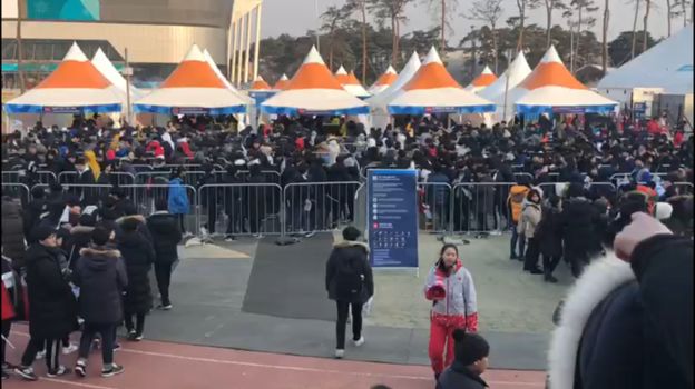 Таких очередей я не видел пока ни на одном соревновании. На подступе к хоккейной арене "Квандон" было так же многолюдно, как перед церемонией открытия. И это – женский хоккей, Корея – Япония.