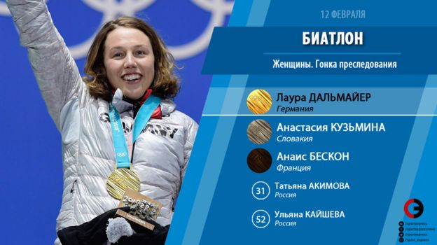 Немка Лаура Дальмайер завоевала золото Олимпийских игр 2018 года в гонке преследования. Для 24-летней биатлонистки эта награда высшего достоинства стала второй на соревнованиях в Пхенчхане - ранее она заняла первое место в спринте.