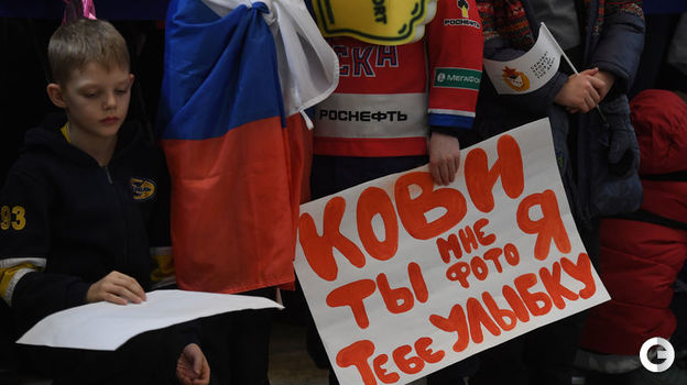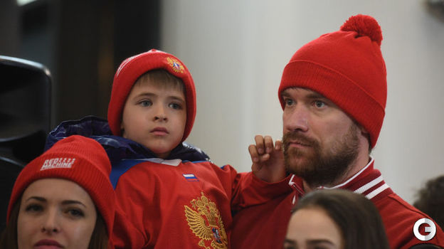 Торжественная встреча российских спортсменов, участников Олимпийских игр-2018 в Пхенчхане в аэропорту Шереметьево. Фигуристы, хоккеисты, лыжники...