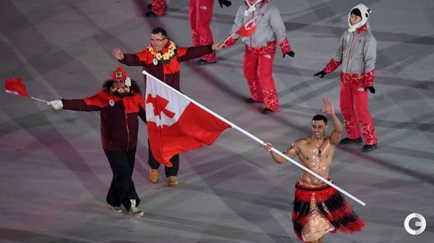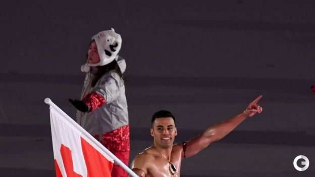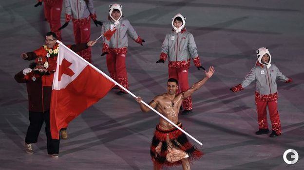 Открытие Олимпиады. Объединенная Корея, полуголый атлет из Тонги