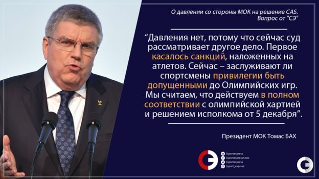 Томах Бах: "Не буду спекулировать насчет итогов слушания в CAS ". Цитаты президента МОК