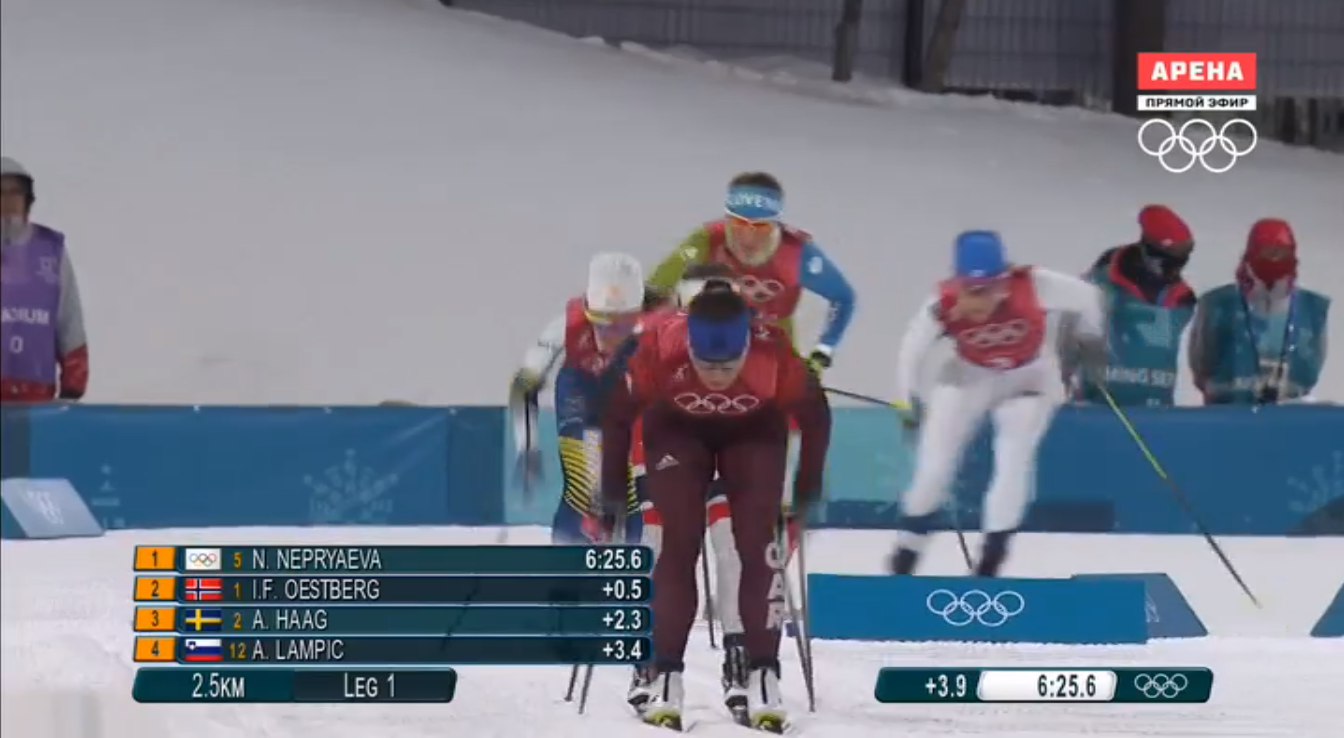 Прошла первая передача эстафеты. Да, Белоруковой придется сражаться с Якобсен, остальные - очень далеко, еще и Словения вклинивается в борьбу. Браво, шикарный этап от Непряевой!