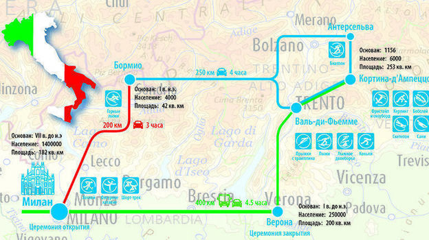Итальянскую заявку тоже особенно компактной не назовешь, хотя тут хотя бы все объекты располагаются в пределах одной страны. Так, церемония открытия и все ледовые соревнования пройдут в Милане, горнолыжники будут соревноваться в Кортина-д'Ампеццо, биатлонисты – в Антерсельве, а закрытие Игр состоится на исторической "Арене" в Вероне.