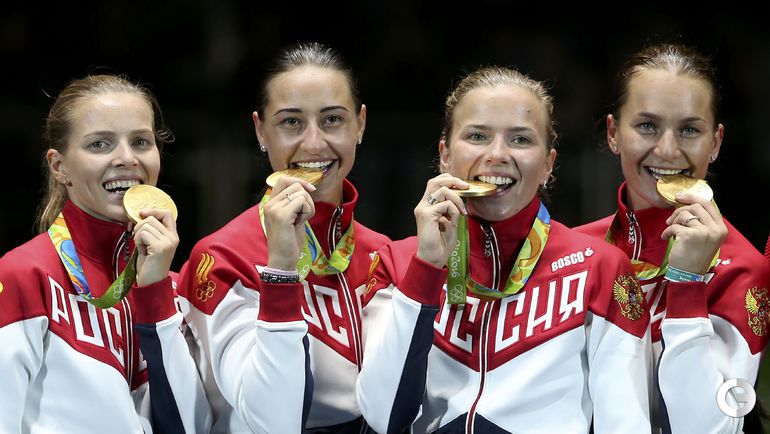 19 золотых медалей Рио (всего - 56 медалей, 19+18+19) нашей команде принесли Евгений Тищенко (бокс), Роман Власов, Давит Чакветадзе (греко-римская борьба), Беслан Мудранов, Хасан Халмурзаев (дзюдо), Алия Мустафина (спортивная гимнастика), Екатерина Макарова/Елена Веснина (теннис), Яна Егорян (фехтование, сабля), Инна Дериглазова (фехтование, рапира), сборная России в мужской рапире, сборная России в женской сабле, Наталья Ищенко/Светлана Ромашина и группа (Влада Чигирева, Светлана Колесниченко, Елена Прокофьева, Алла Шишкина, Александра Пацкевич, Мария Шурочкина, Ищенко и Ромашина) (синхронное плавание), Абдулрашид Садулаев, Сослан Рамонов (вольная борьба), женская сборная по гандболу, Александр Лесун (современное пятиборье), Маргарита Мамун (художественная гимнастика), сборная России по художественной гимнастике.