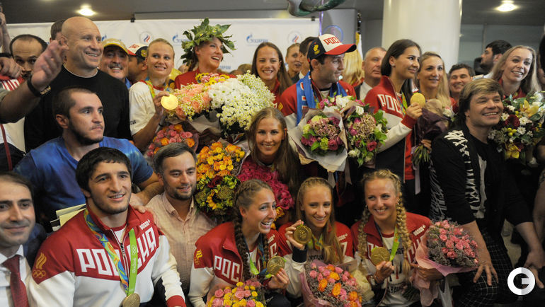 Самолет российской олимпийской делегации приземлился в Москве. Рейс вылетел из Рио-де-Жанейро, где в воскресенье завершились Олимпийские игры, с задержкой около 4,5 часа. С этим рейсом вернулись в столицу призеры последней недели Игр. В их числе гимнастки, команда по синхронному плаванию, женская гандбольная сборная, борцы Адбулрашид Садулаев, Сослан Рамонов и Давит Чакветадзе, боксер Евгений Тищенко, пятиборец Александр Лесун.