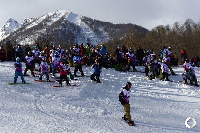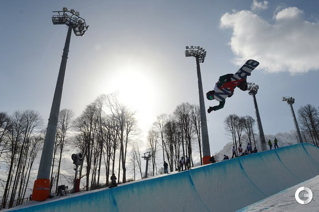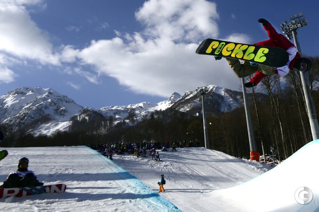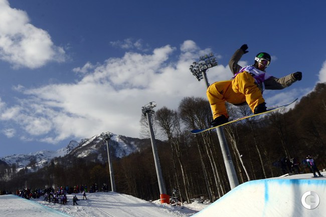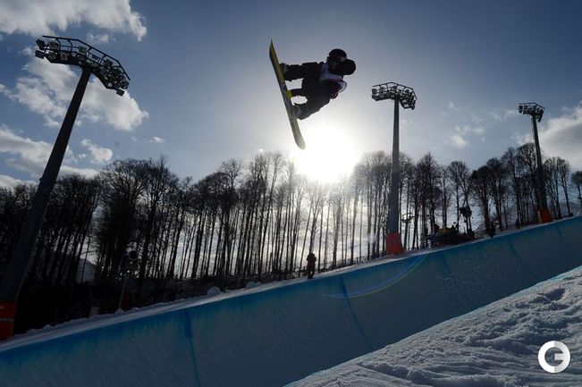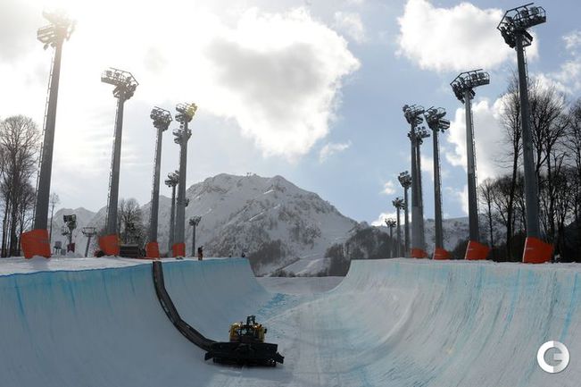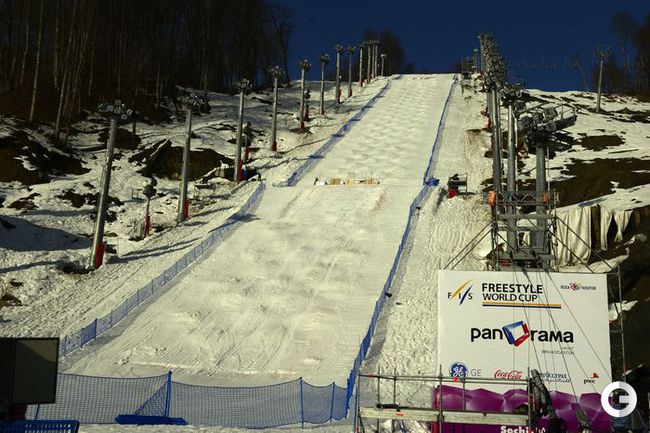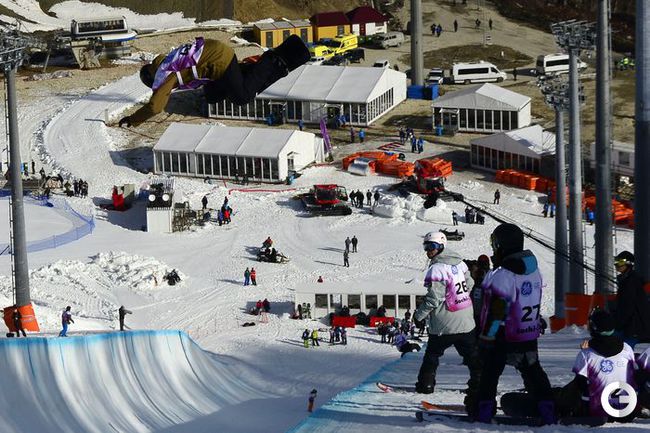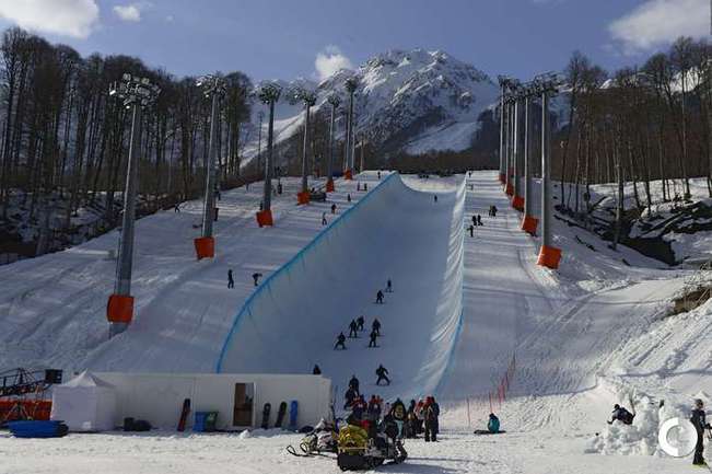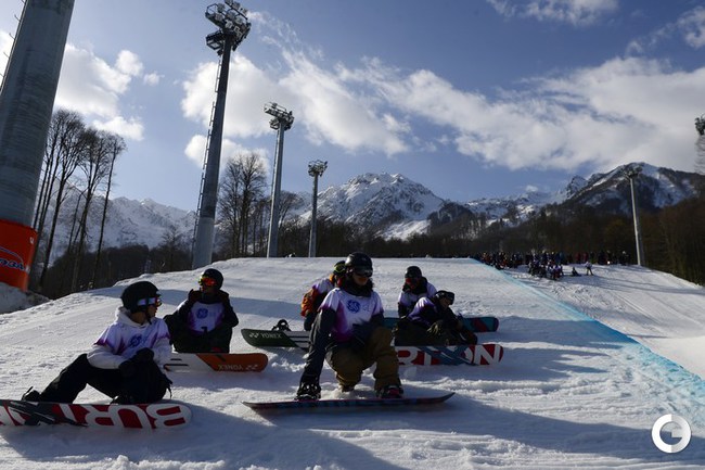 На олимпийской трассе "Роза Хутор" в Сочи прошлитренировочные заезды сноубордистов перед этапом Кубка мира. Фото AFP