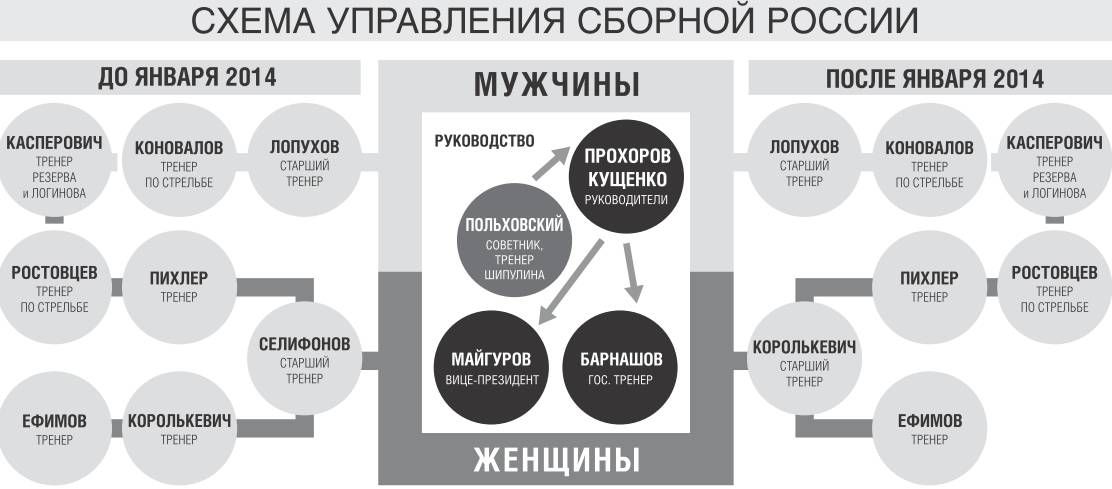 …Вполне вероятно, причины неудач нашей команды еще глубже или лежат совсем в другой плоскости. Но версия об управленческих просчетах тоже имеет право на жизнь. Разные тренировочные группы во время подготовки Сочи-2014 работали в наших сборных по многим видам спорта. Но только в биатлоне все это приобрело такие причудливые формы.