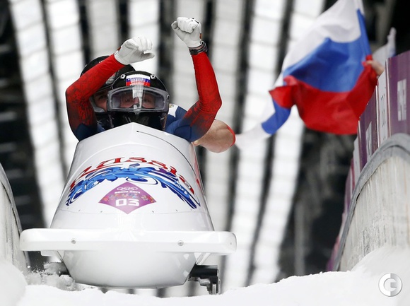 Сочи. Олимпийские игры. Мужчины. Двойка. 2-й заезд. 1. ЗУБКОВ/ВОЕВОДА (Россия) – 1.52,82 (56,25 + 56,57). 2. Хефти/Бауманн (Швейцария) – 1.53,14 (56,46 + 56,68). 3. Холкомб/Лэнгтон (США) – 1.53,18 (56,34 + 56,84). 4. Криппс/Барнетт (Канада) – 1.53,26 (56,56 + 56,70). 5. КАСЬЯНОВ/БЕЛУГИ(Россия) – 1.53,29 (56,69 + 56,60). Фото AFP, REUTERS