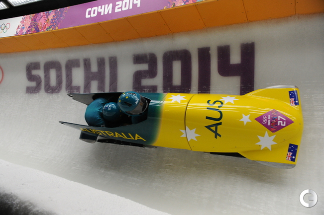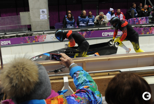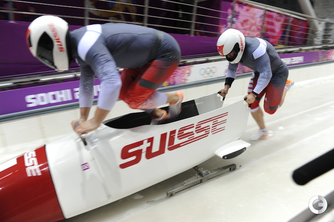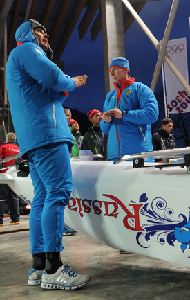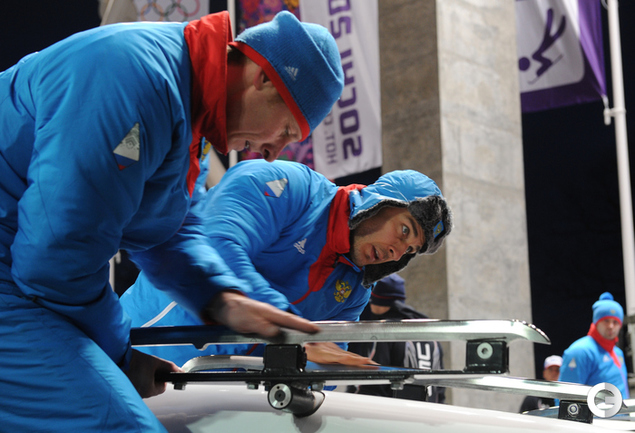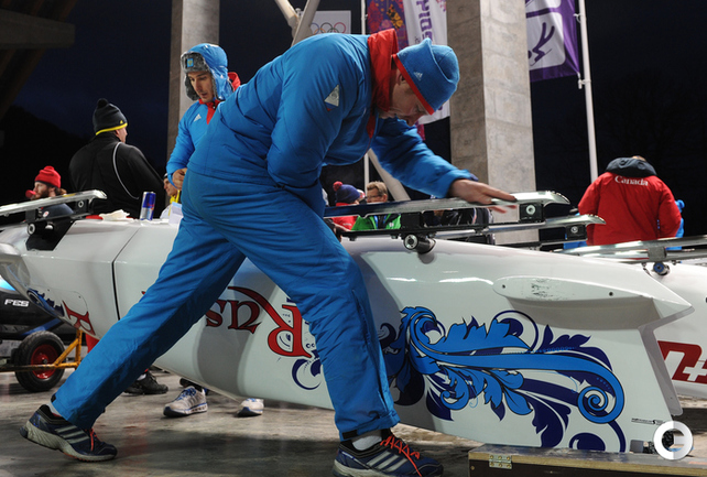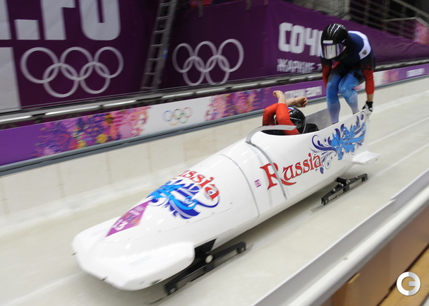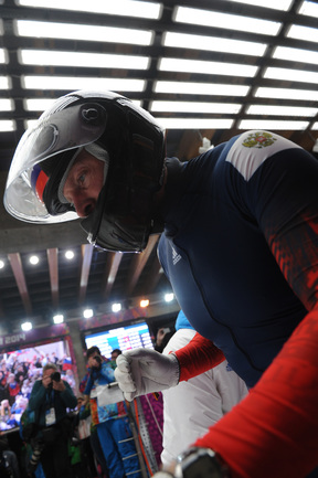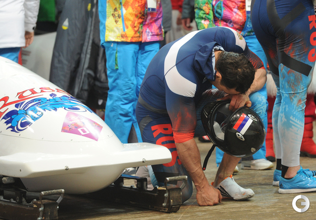 Бобслей. Сочи. XXII Олимпийские зимние игры. Мужчины. Двойка. 4-й заезд. 1. ЗУБКОВ/ВОЕВОДА (Россия) – 3.45,39 (56,25 + 56,57 + 56,08 + 56,49). 2. Хефти/Бауманн (Швейцария) – 3.46,05 (56,46 + 56,68 + 56,26 + 56,65). 3. Холкомб/Лэнгтон (США) – 3.46,27 (56,34 + 56,84 + 56,41 + 56,68). 4. КАСЬЯНОВ/БЕЛУГИН (Россия) – 3.46,30 (56,69 + 56,60 + 56,44 + 56,57). Фото - Федор УСПЕНСКИЙ, "СЭ"