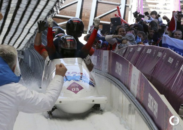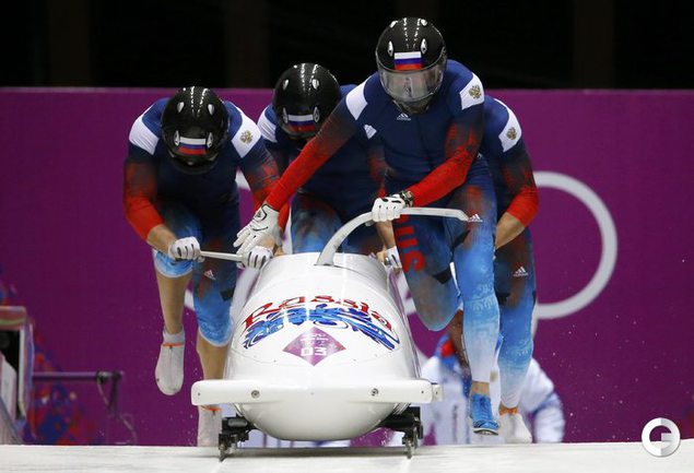 Экипаж Александра Зубкова в составе Алексея Негодайло, Дмитрия Труненкова и Алексея Воеводы выиграл золотые медали Олимпиады в Сочи. Фото REUTERS
