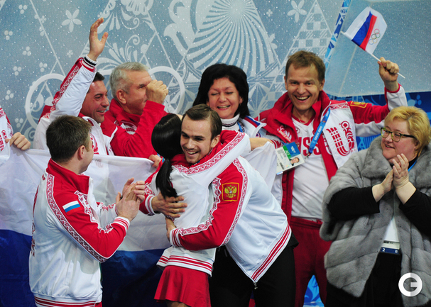 Сочи. Юлия Липницкая, Ксения Столбова и Федор Климов принесли в копилку сборной России 10 очков в командных соревнованиях. Тем самым российская сборная увеличила лидерство в общем зачете до 6 баллов. Фото - Александр Федоров, "СЭ".