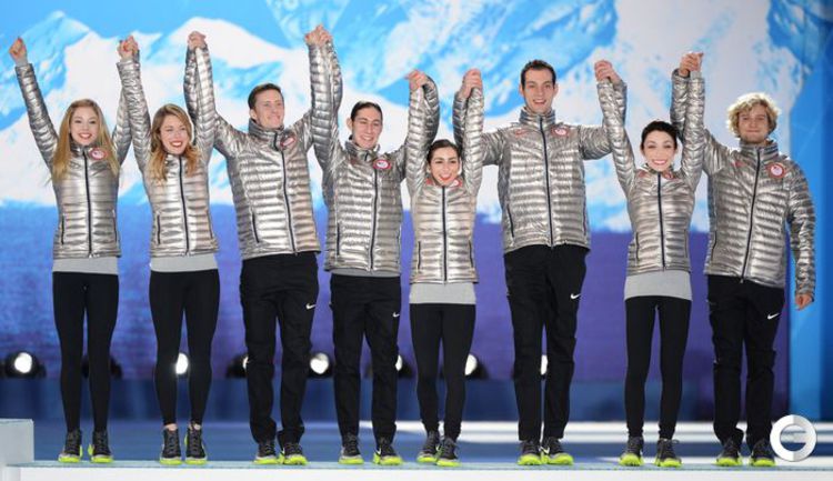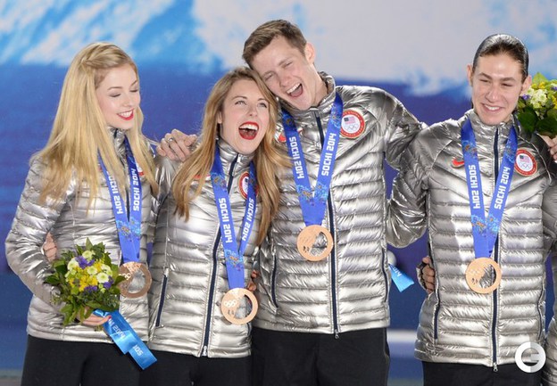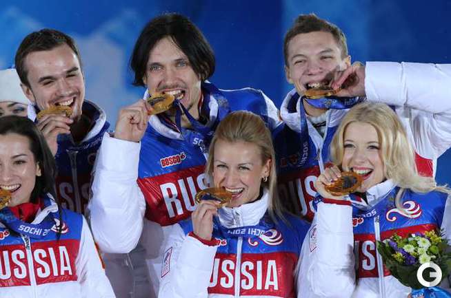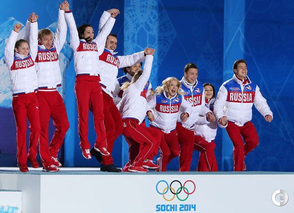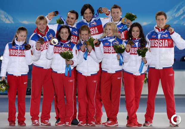 Сочи. Российским фигуристами вручили золотые медали Олимпиады в Сочи за победу в командном турнире. Фото AFP, REUTERS