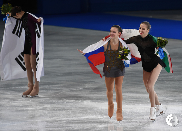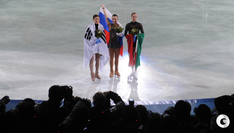 Сочи. XXII Олимпийские зимние игры. Женщины. Итог. 1. СОТНИКОВА (Россия) – 224,59. 2. Юна Ким (Корея) – 219,11. 3. Костнер (Италия) – 216,73. 4. Голд (США) – 205,53. 5. ЛИПНИЦКАЯ (Россия) – 200,57. 6. Асада (Япония) – 198,22. Фото Александра ФЕДОРОВА, "СЭ"